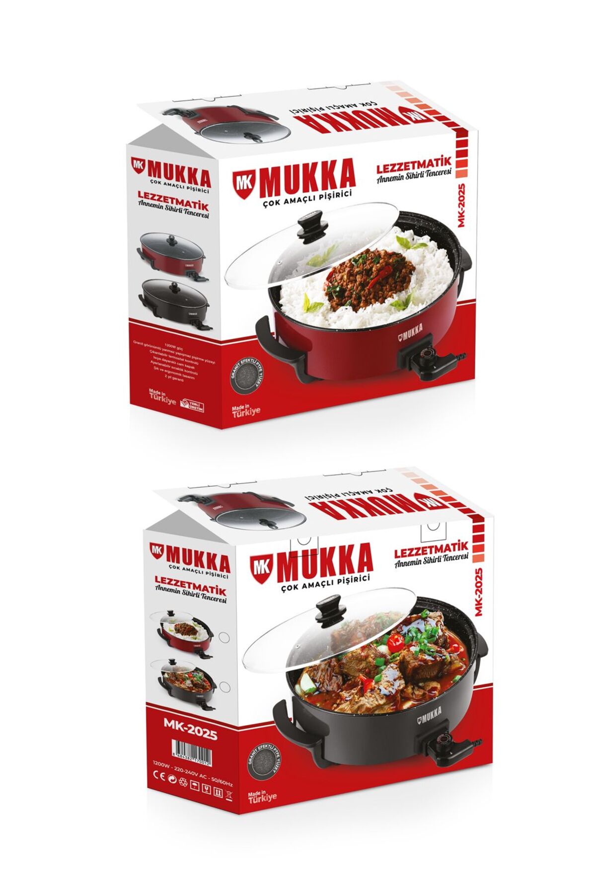MK-2025 Lezzetmatik Çok Amaçlı Pişirici Pizza Tavası -Kırmızı